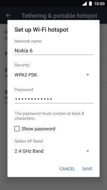Press WPA2 PSK to password protect your Wi-Fi hotspot.