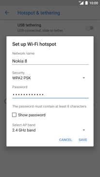Press WPA2 PSK to password protect your Wi-Fi hotspot.