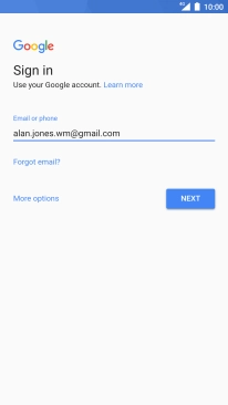 If you don't have a Google account, press More options and follow the instructions on the screen to create an account.