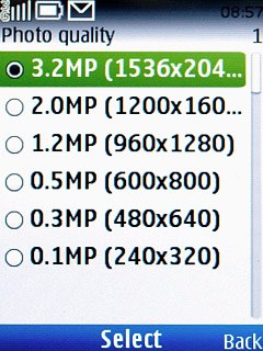 Scroll to Photo quality and press the Navigation key.