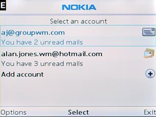 Highlight the required email account and press the Navigation key.