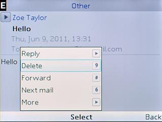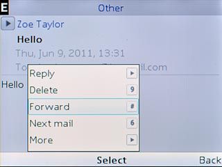 Highlight the required email message and press the Navigation key.