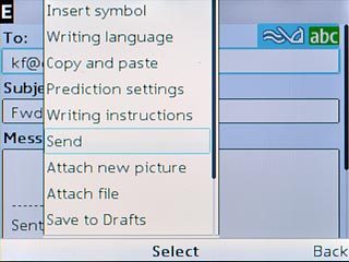 Scroll to Send and press the Navigation key to send the email message.