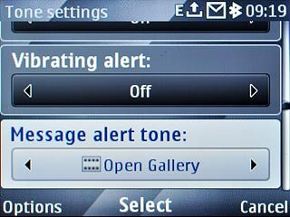 Scroll to Message alert tone and press Navigation key right to select the required message tone or Open Gallery.