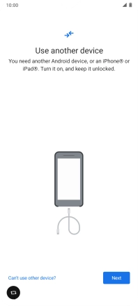 If you have a cable which can connect the two phones, insert the cable and follow the instructions on the screen to transfer content to your phone. If you don’t have a cable, press No cable?.