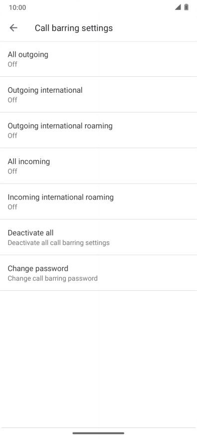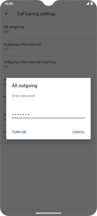 Key in your barring password and press TURN ON. The default barring password is 0000.