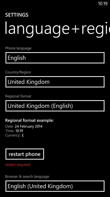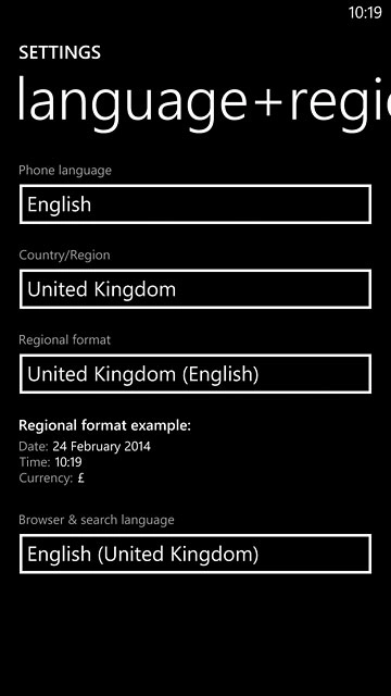 Press language+region.
