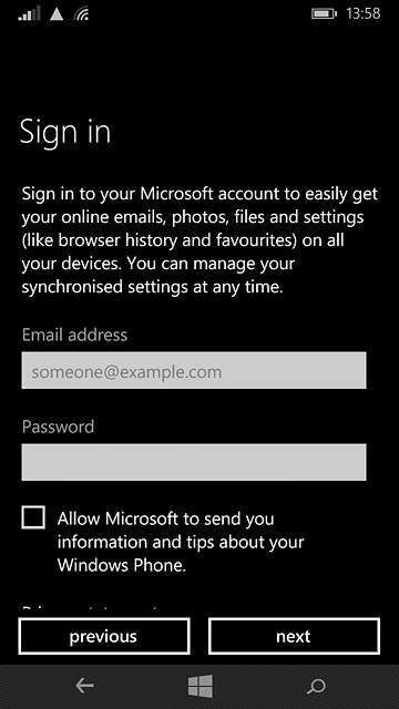 Press the field below "Email address" and key in the email address for your Microsoft account.