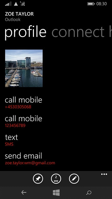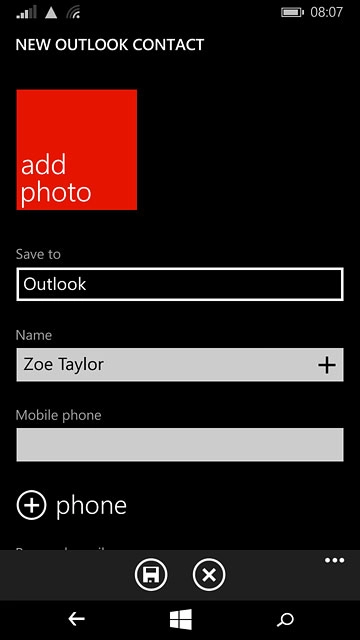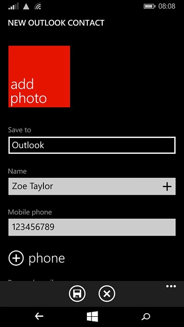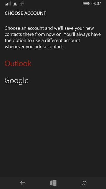 If you select Outlook, the contact is attached to this account but is also displayed on your phone.