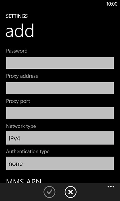 Press the field below "Connection name" and key in Vodafone MMS + Internet