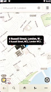 The selected destination is displayed as a point on the map.
