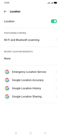 Press the indicator next to "Location" to turn the function on or off.
