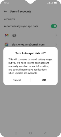 Press the indicator next to "Automatically sync app data" to turn the function on or off.