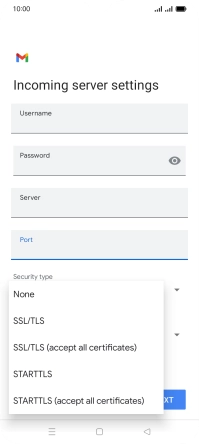 Press the field below "Server" and key in the name of your email provider's incoming server.