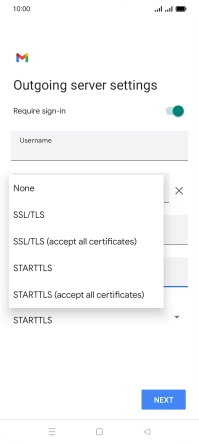 Press the field below "Username" and key in the username for your email the email provider's outgoing server.