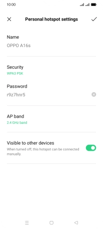 Press the indicator next to "Personal hotspot" to turn on the function.
