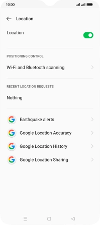 Press the indicator next to "Location" to turn the function on or off.