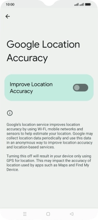 If you press the indicator next to "Improve Location Accuracy" to turn off the function, your phone can find your exact position using the GPS satellites but it may take longer as there is no access to supplementary information from the mobile network or nearby Wi-Fi networks.