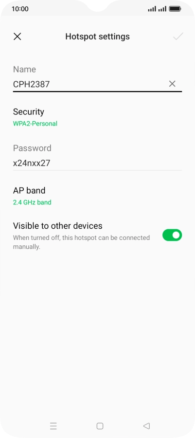 Press the indicator next to "Personal hotspot" to turn on the function.