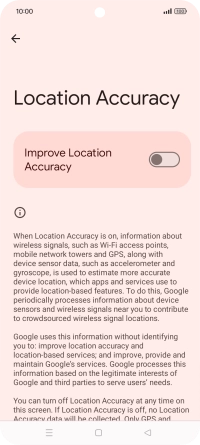 If you press the indicator next to "Improve Location Accuracy" to turn off the function, your phone can find your exact position using the GPS satellites but it may take longer as there is no access to supplementary information from the mobile network or nearby Wi-Fi networks.