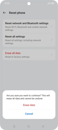 Press Erase data. Wait a moment while the factory default settings are restored. Follow the instructions on the screen to set up your phone and prepare it for use.