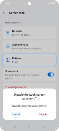 Press Disable and key in the additional phone lock code you created earlier.
