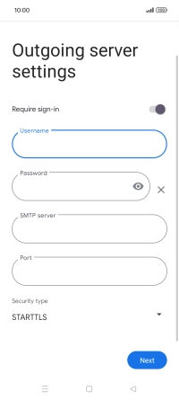 Press the field below "Username" and key in the username for your email the email provider's outgoing server.
