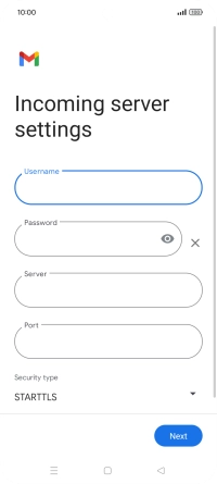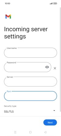 Press the field below "Server" and key in the name of your email provider's incoming server.