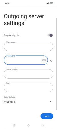 Press the field below "Password" and key in the password for your email provider's outgoing server.