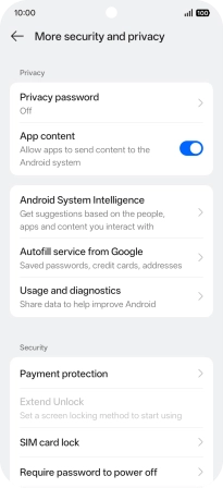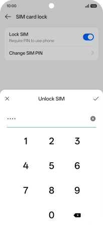 Press the indicator next to "Lock SIM" to turn the function on or off.