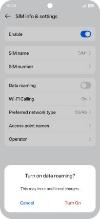 Press the indicator next to "Data roaming" to turn the function on or off.