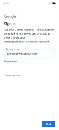 If you don't have a Google account, press Create account and follow the instructions on the screen to create an account.