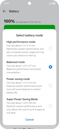 Press Battery mode.