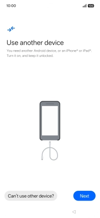 If you have a cable which can connect the two phones, insert the cable and follow the instructions on the screen to transfer content to your phone. If you don’t have a cable, press No cable?.