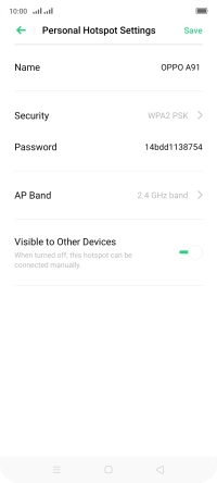 Press the field next to "Name" and key in the required name for the Wi-Fi hotspot.