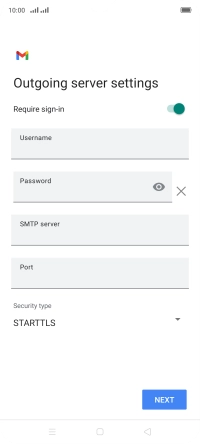 Press the indicator next to "Require sign-in" to turn the function on or off. Please note that if you're using Vodafone's outgoing server, turn off SMTP authentication and leave the username and password fields empty.