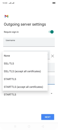 Press the field below "Username" and key in the username for your email the email provider's outgoing server.