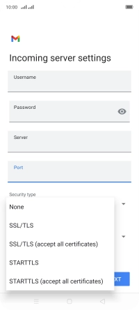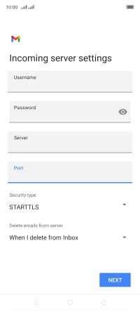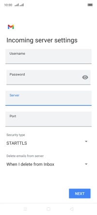 Press the field below "Server" and key in the name of your email provider's incoming server.