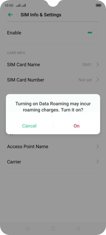 Press the indicator next to "Data Roaming" to turn the function on or off.