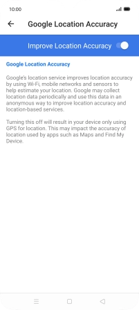 If you press the indicator next to "Improve Location Accuracy" to turn off the function, your phone can find your exact position using the GPS satellites but it may take longer as there is no access to supplementary information from the mobile network or nearby Wi-Fi networks.
