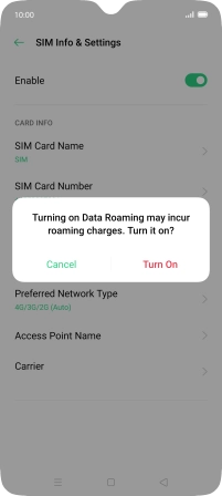 Press the indicator next to "Data Roaming" to turn the function on or off.