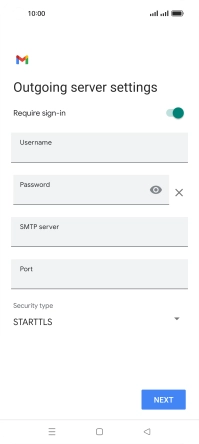 Press the indicator next to "Require sign-in" to turn the function on or off. Please note that if you're using Vodafone's outgoing server, turn off SMTP authentication and leave the username and password fields empty.