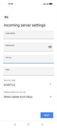 Press the field below "Server" and key in the name of your email provider's incoming server.