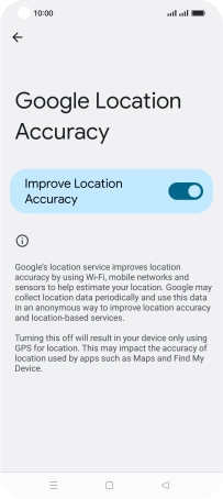 If you press the indicator next to "Improve Location Accuracy" to turn off the function, your phone can find your exact position using the GPS satellites but it may take longer as there is no access to supplementary information from the mobile network or nearby Wi-Fi networks.