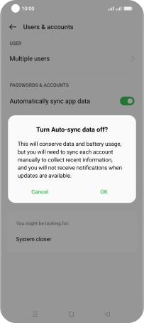 Press the indicator next to "Automatically sync app data" to turn the function on or off.