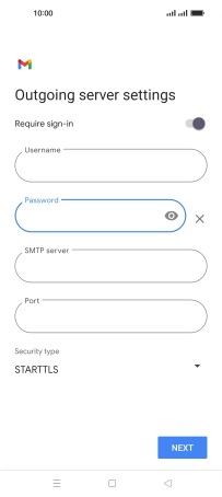 Press the indicator next to "Require sign-in" to turn the function on or off. Please note that if you're using Vodafone's outgoing server, turn off SMTP authentication and leave the username and password fields empty.