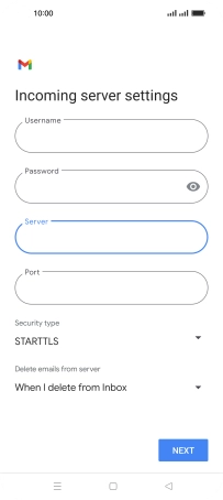 Press the field below "Server" and key in the name of your email provider's incoming server.