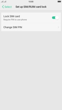 Press the indicator next to "Lock SIM card" to turn the function on or off.