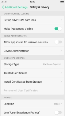 2. Turn use of PIN on or off