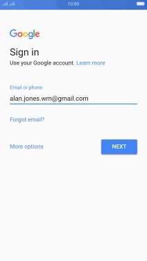If you don't have a Google account, press More options and follow the instructions on the screen to create an account.